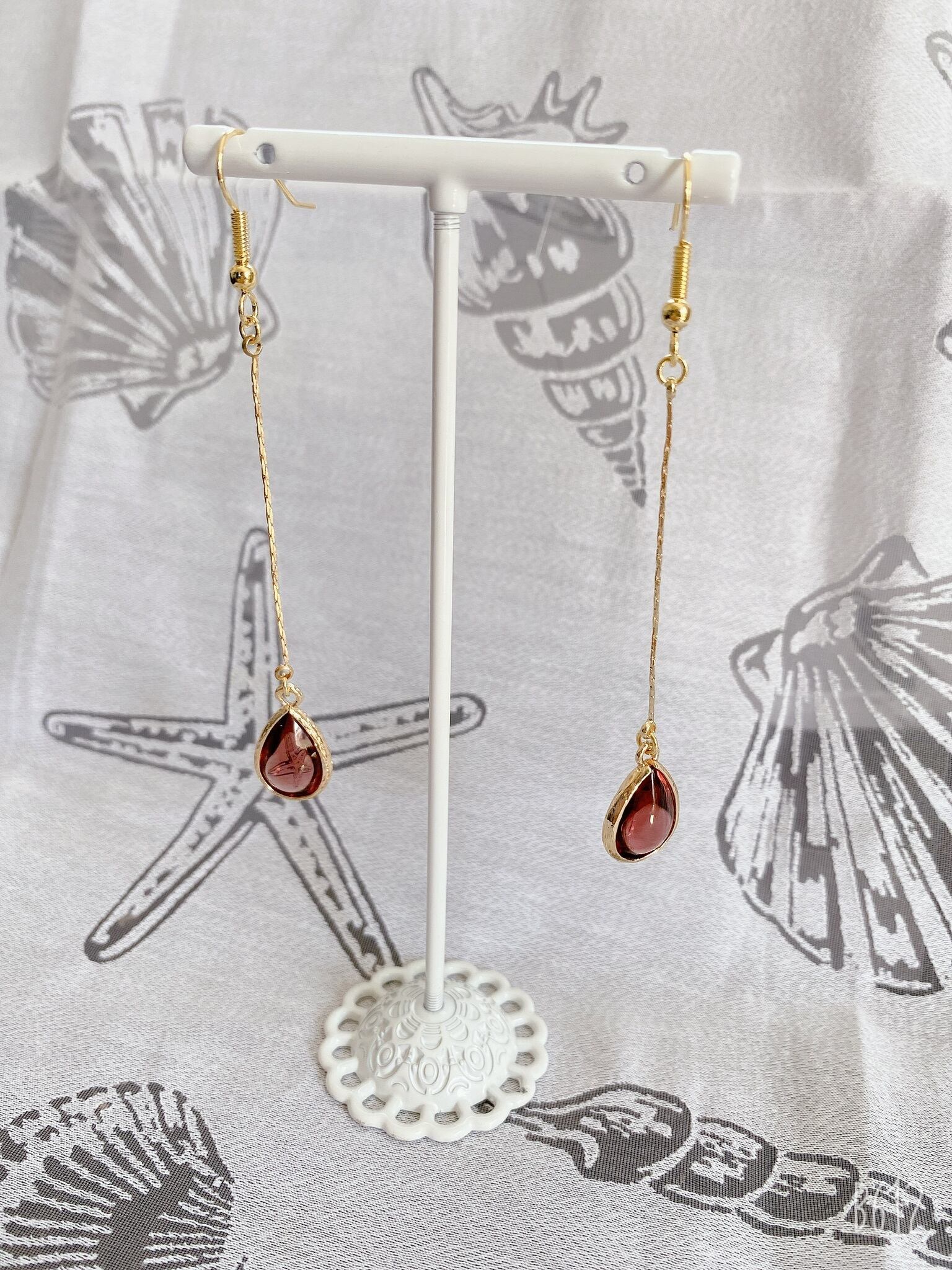 秋らしいバーガンディカラーの雫型パーツを使用したぷらんぷらんピアス♡